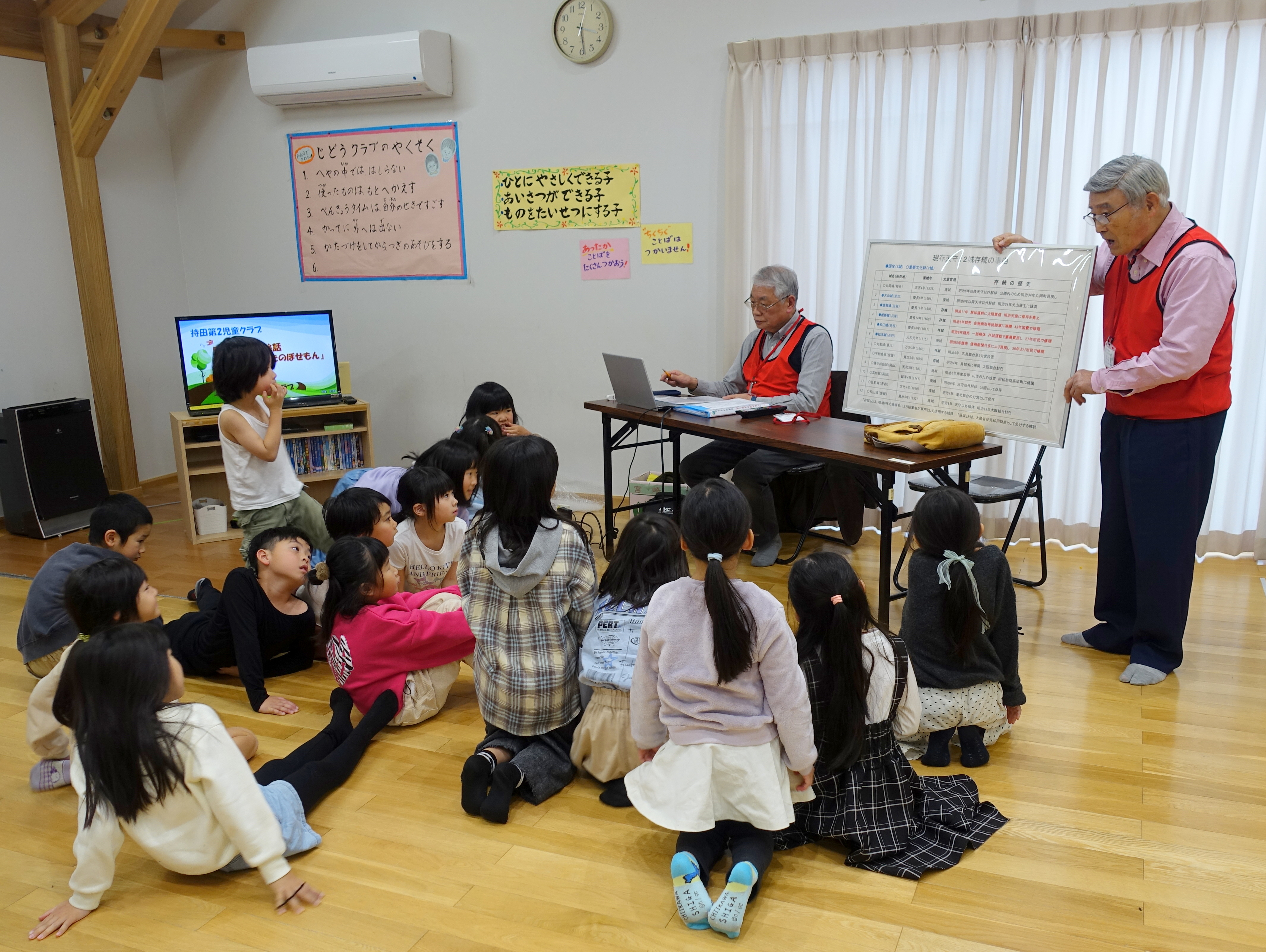 12月26日(金)、持田第2児童クラブ(小学1〜3年生)約20名を対象に、松江城保存の経緯について楽しく学ぶ 「国宝松江城秘話 誇り高きのぼせもん」電子紙芝居鑑賞会を開催しました。