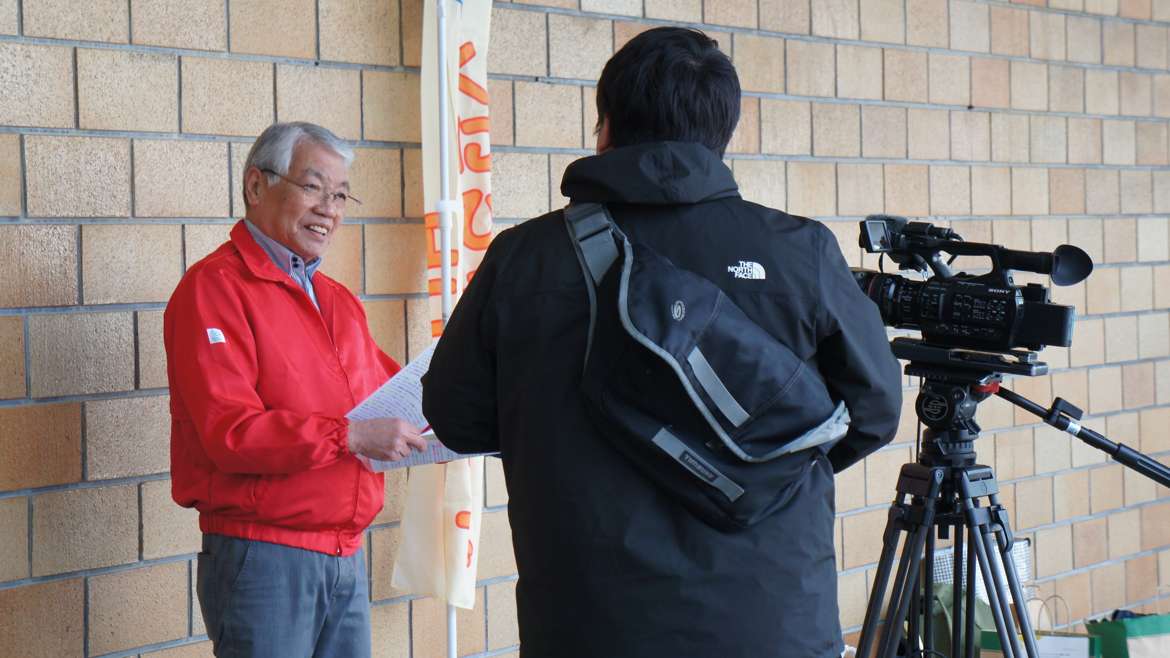 現場では、15年前震災直後に現地の復旧作業に従事した際のヘルメットを被って参加した会員もおり、活動の原点を守り続ける姿勢を示しました。チラシを受け取った若者からは「地球温暖化防止につながる 節電やごみ減らしなど、自分の中でも意識したい」と頼もしい声を聞くことができ、大きな励みとなりました。
