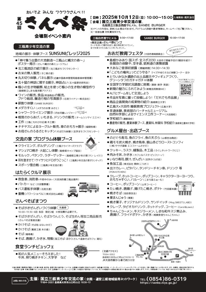 ご家族、ご友人をお誘い合わせの上、ぜひ「さんべ祭」へお越しください! 皆さんのご来場を心よりお待ちしております。