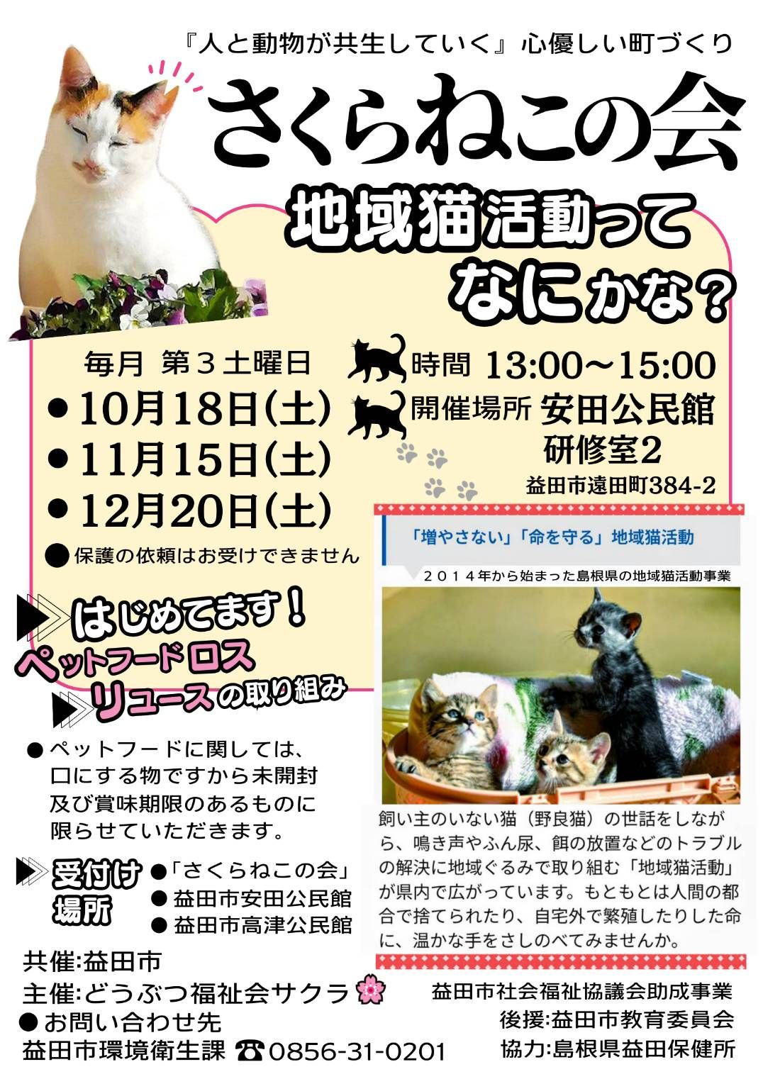 使わなかったペットフードやペット用品をお持ちよりいただき、必要とされているところへお届けします。さくらねこの会開催日に受け付けるほか、平日は安田公民館、高津公民館への御持ち寄りが可能です。