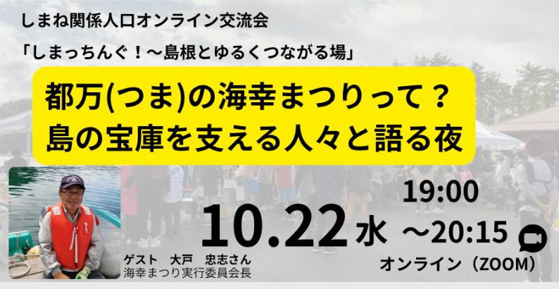 島根県隠岐の島町・都万地区の皆さんの地域にかける熱い想いや、海幸まつりについて、隠岐の島町の魅力についてなど、お話しいただきます♪