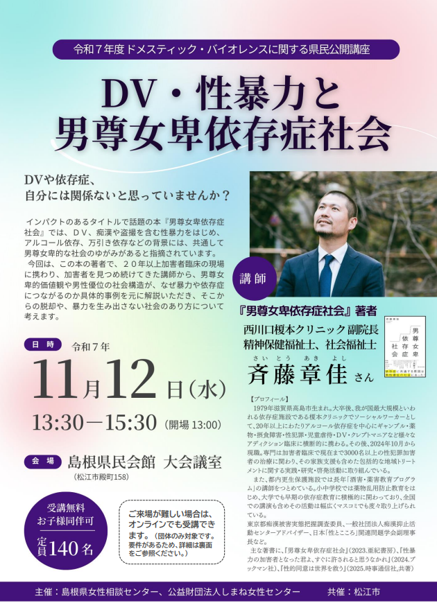 ◎講 師:斉藤章佳(さいとう あきよし)さん