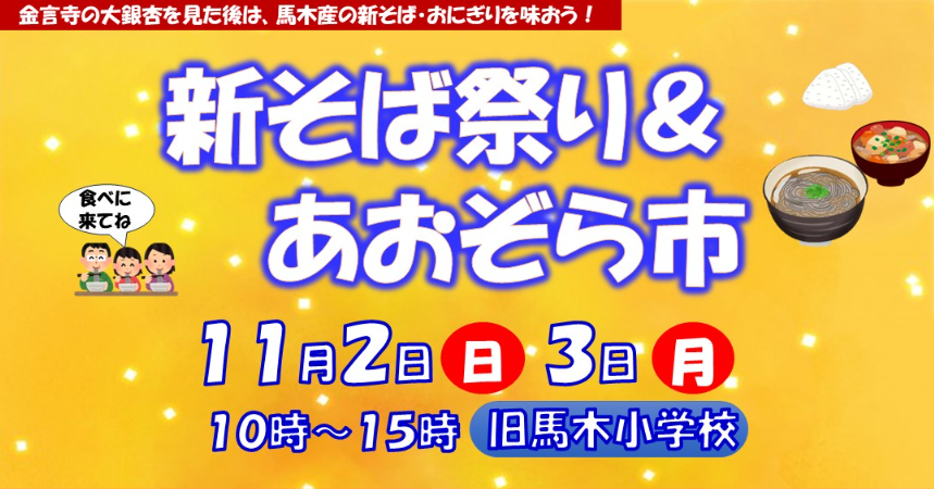 ~ ~ ~ 同時募集中!【11/2~3開催!】金言寺銀杏祭り協賛、新そば祭り&あおぞら市盛り上げ隊募集!~ ~ ~