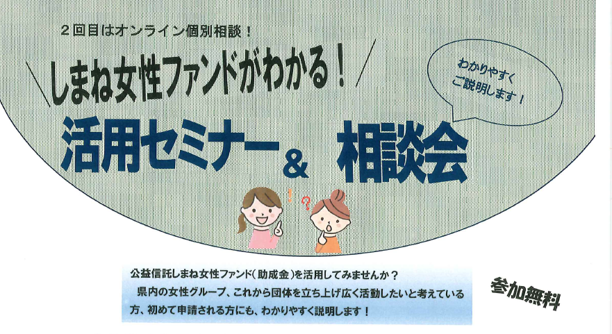 「公益信託しまね女性ファンド活用セミナー&相談会」 ★1回目は「あすてらす」