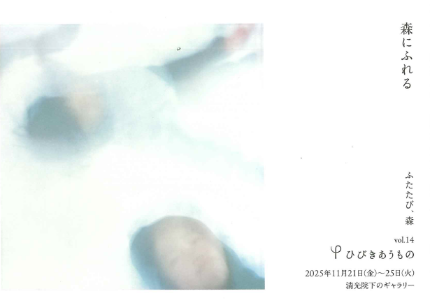 人、物、事が引き合いひびきあう面白さ。作る人、売る人、買う人が垣根を越えて共に感じられる歓び。「森にふれる」とは、それぞれの「間」に見え隠れするコトバを拾うことでもある。2011年『森をさがす』から14年目のひびきあうものが、「間」に横たわるものを共に見つめる場となりますよう、どうぞご来場をお待ちしております。