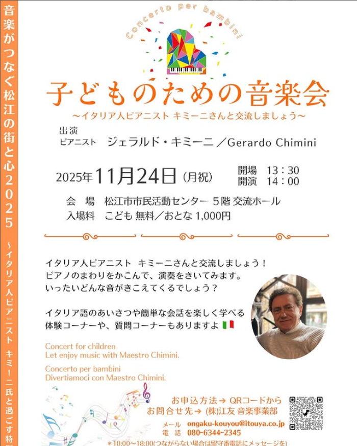 イタリア人ピアニスト キミーニさんと交流しましょう!