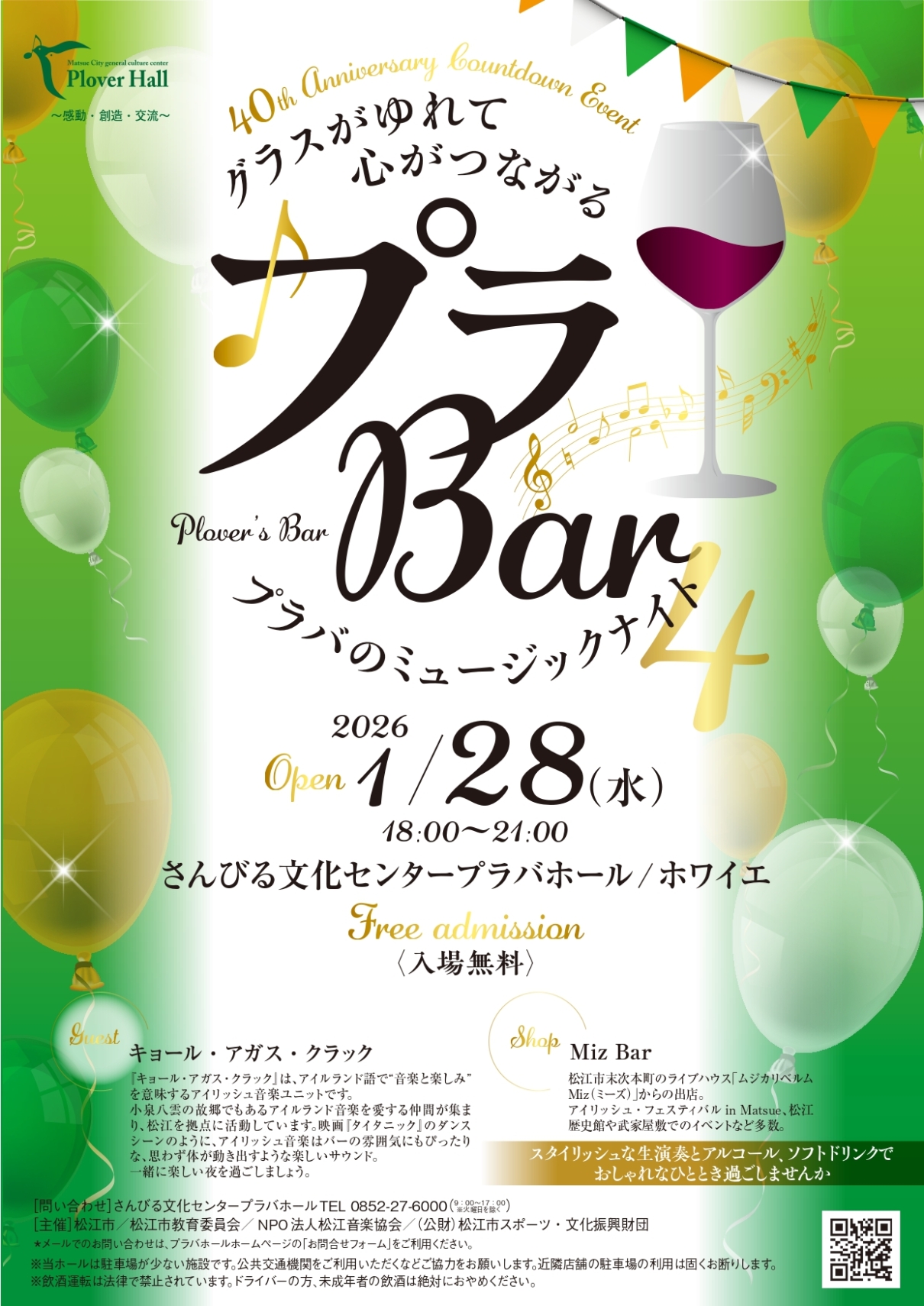 グラスがゆれて 心がつながる プラバのミュージックナイト開館40周年記念プレイベント