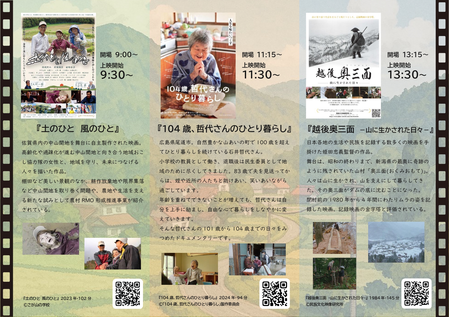 ドキュメンタリー映画、3本立てで上映します。