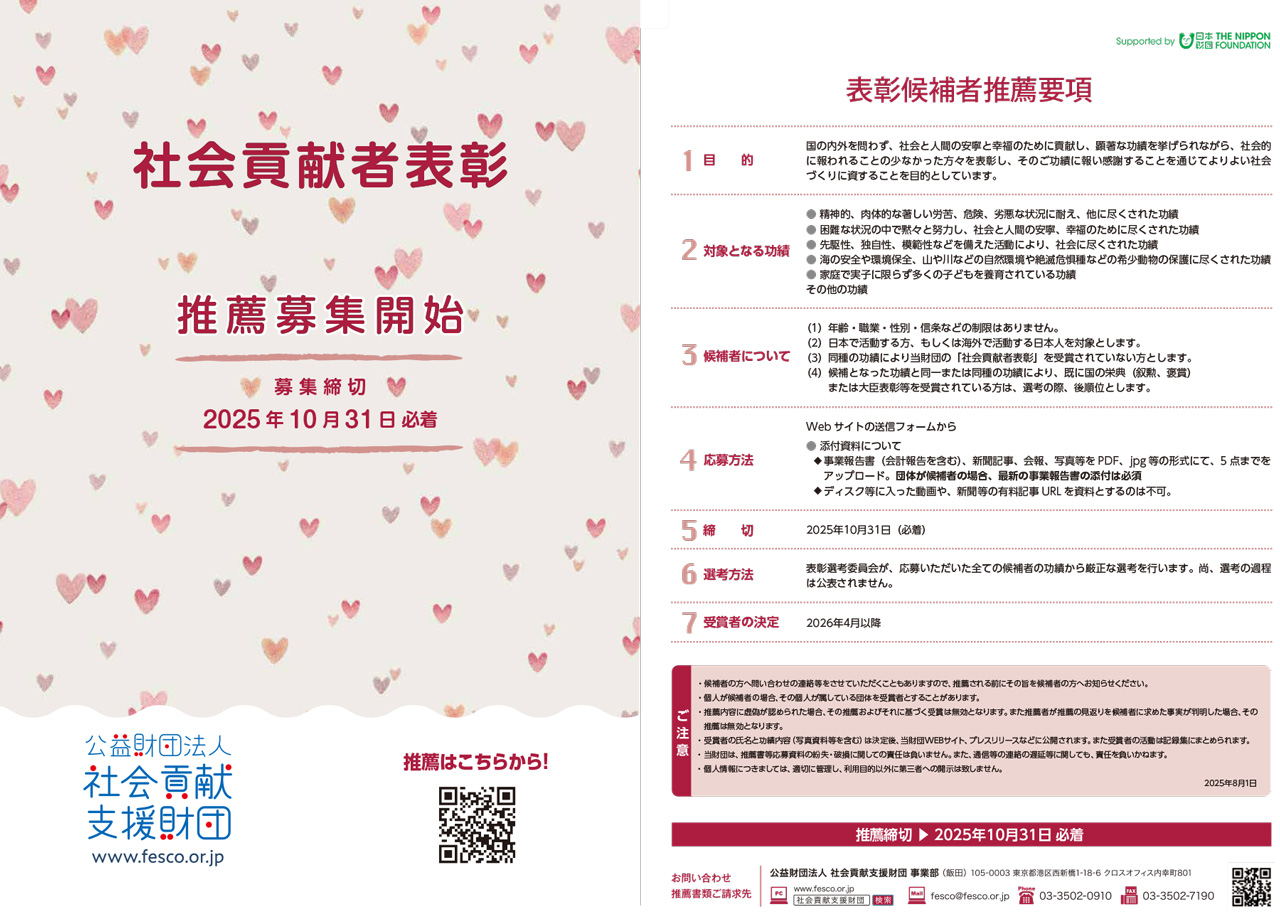(※ 毎年 10月31日 が締め切りです。締め切り後の推薦は次回に繰り越しとなります)