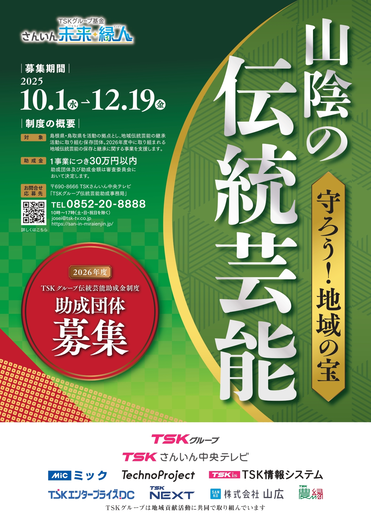 〒690-8666 TSKさんいん中央テレビ「TSKグループ伝統芸能助成事務局」
