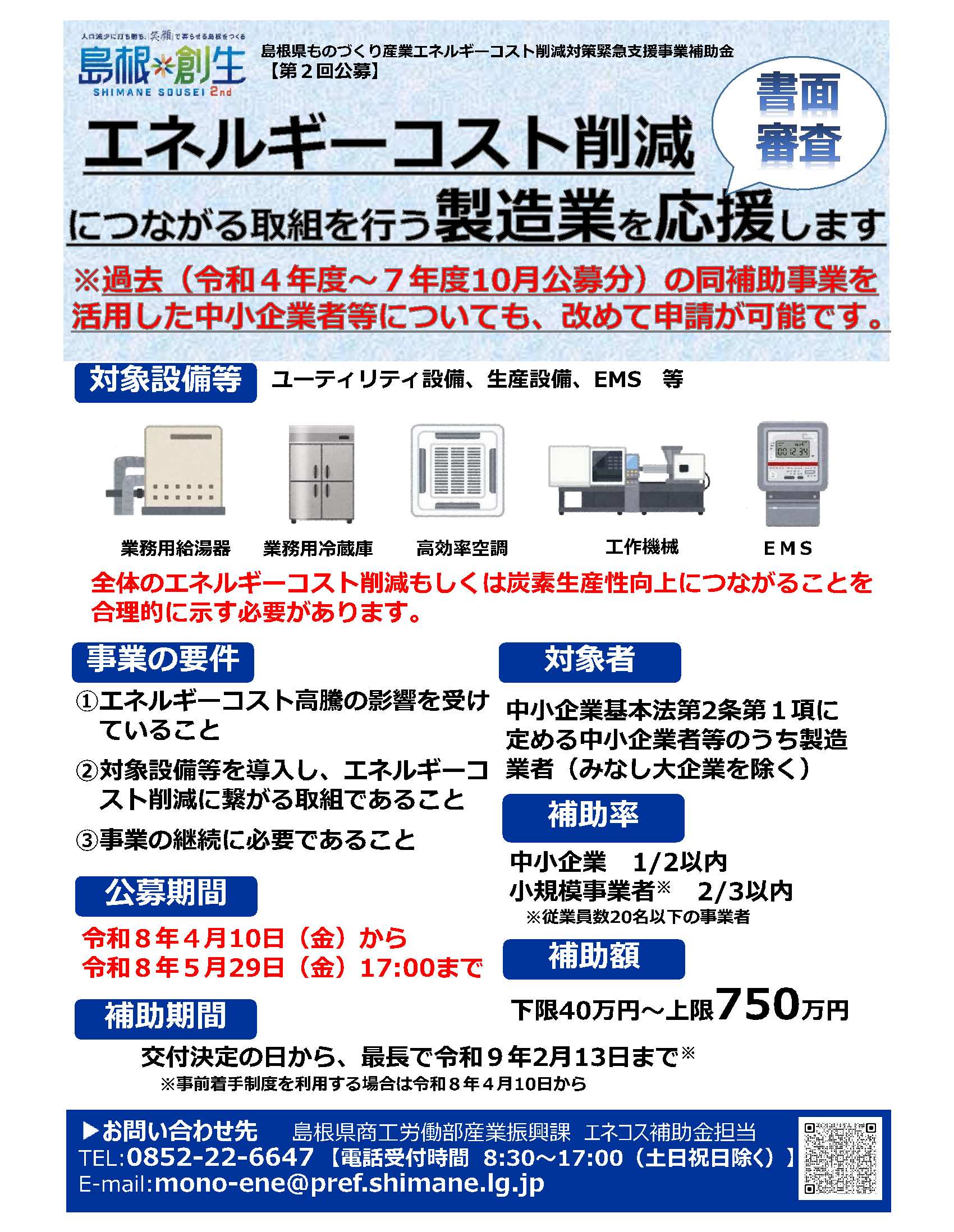 補助期間:交付決定日~令和9年2月13日(事前着手は令和8年4月10日以降)