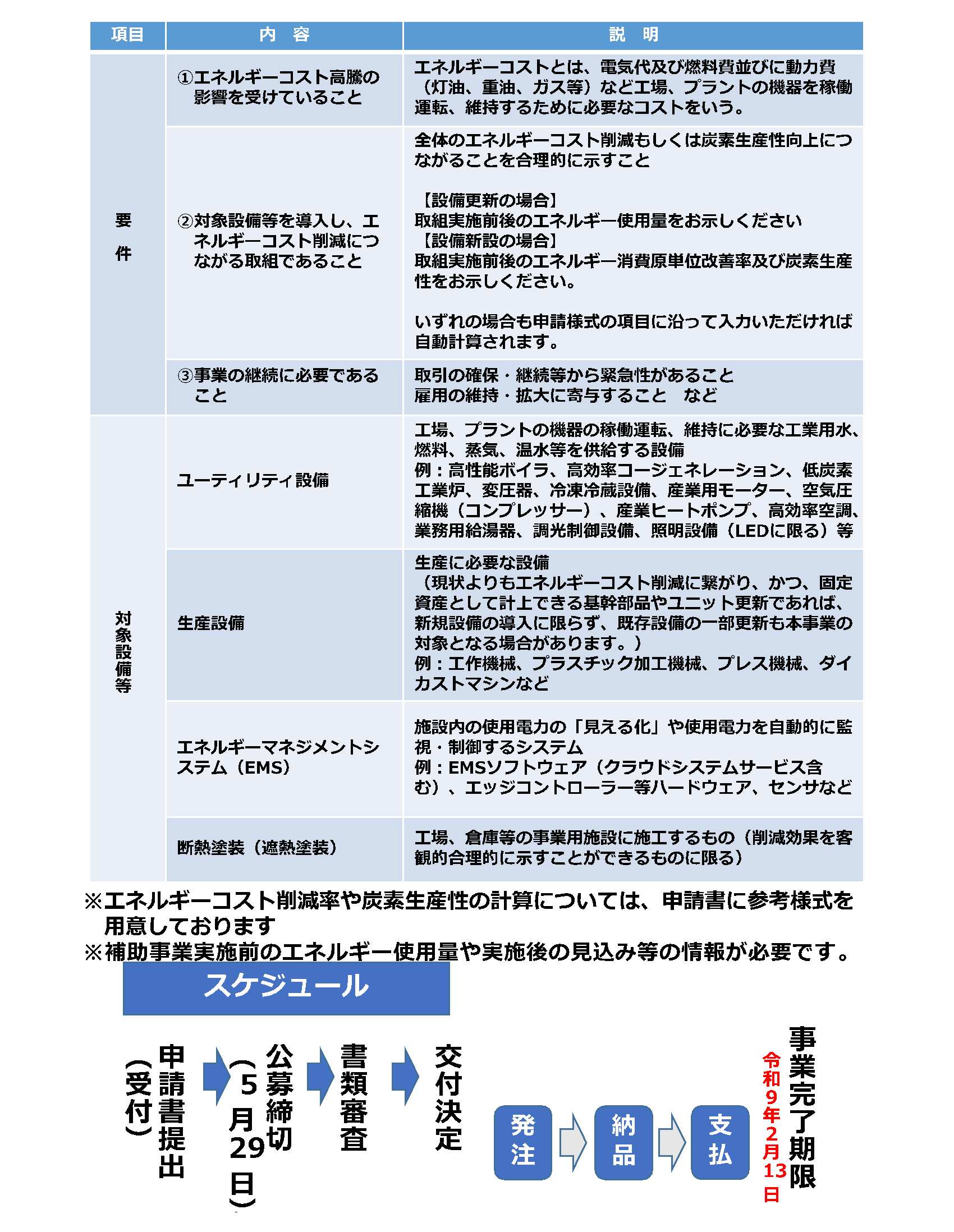 補助対象経費:補助対象設備等の導入に要する経費(導入する設備等の稼働等に不可欠な経費とする)