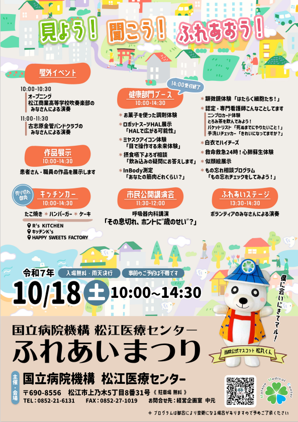 国立病院機構松江医療センターが主催する「ふれあいまつり」でボランティア活動をしていただける方を下記の通り募集しています。活動を希望される方は松江市ボランティアセンターまでご連絡下さい。