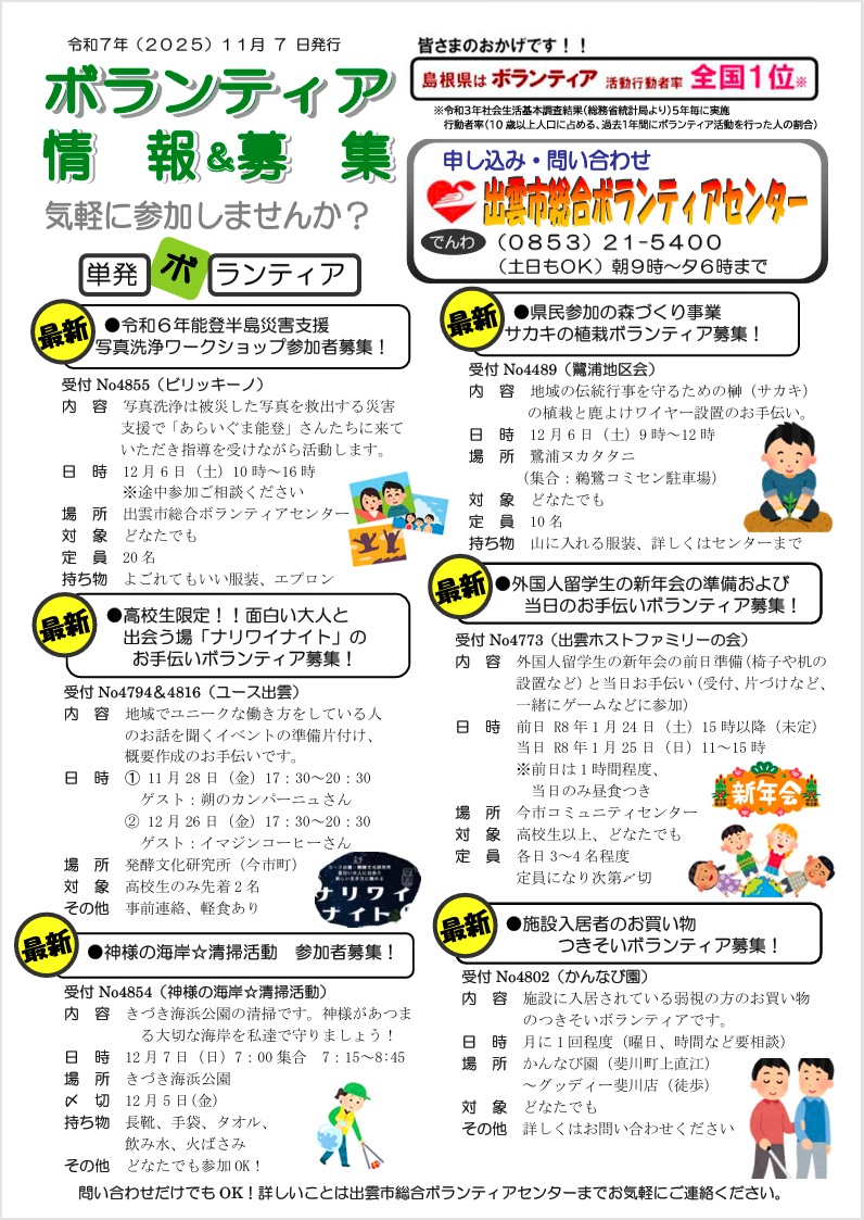 ■内容 ※出雲市総合ボランティアセンター (受付No.4794&4816)