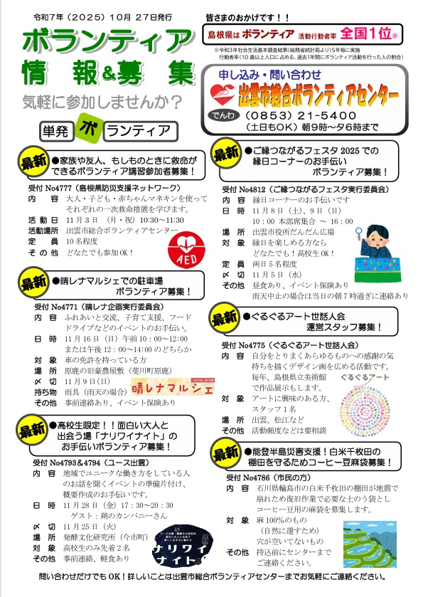 ■内容 ※出雲市総合ボランティアセンター (受付No.4786)