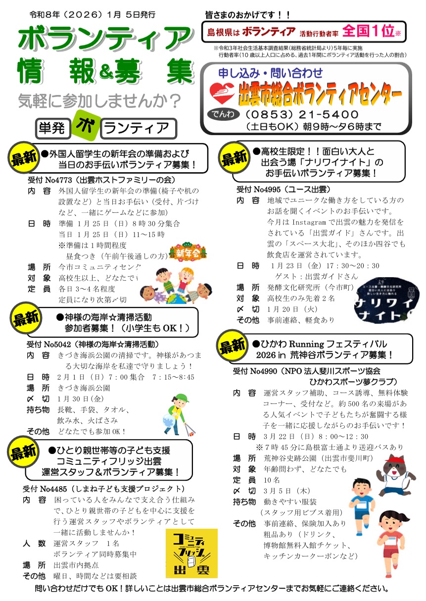 ■内容 ※出雲市総合ボランティアセンター (受付No.4995)